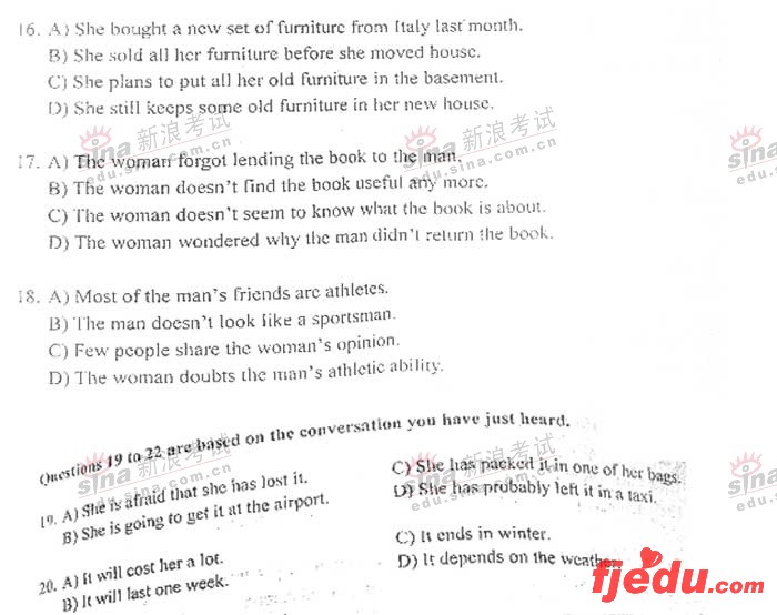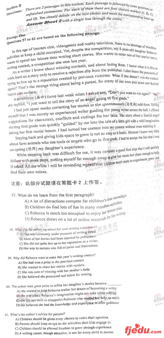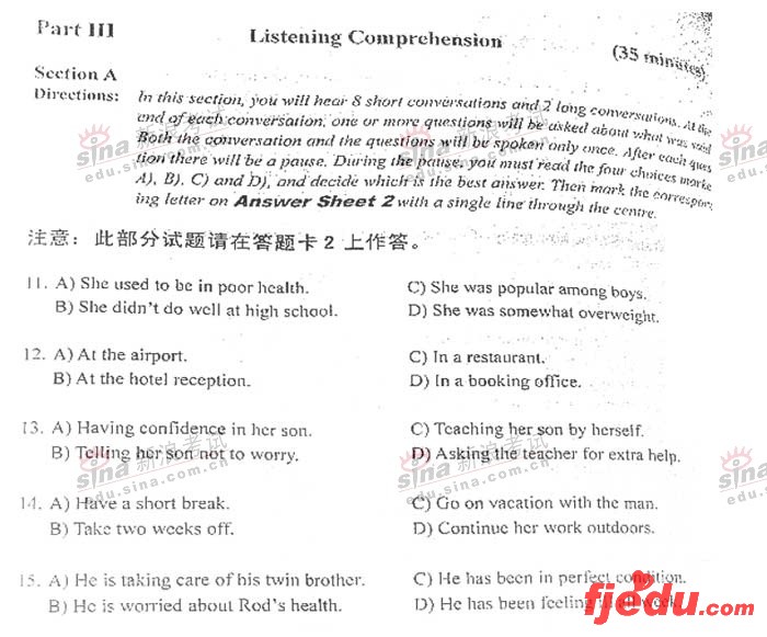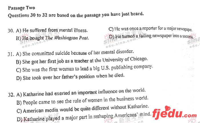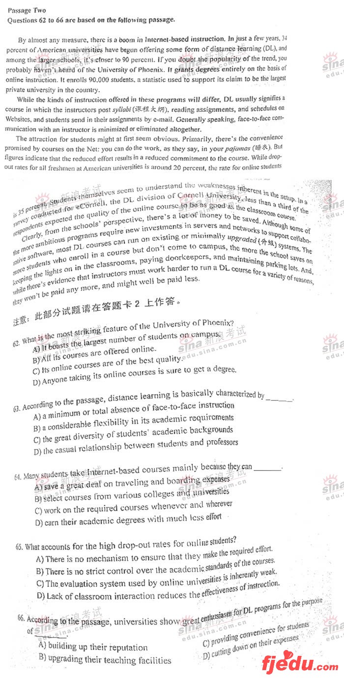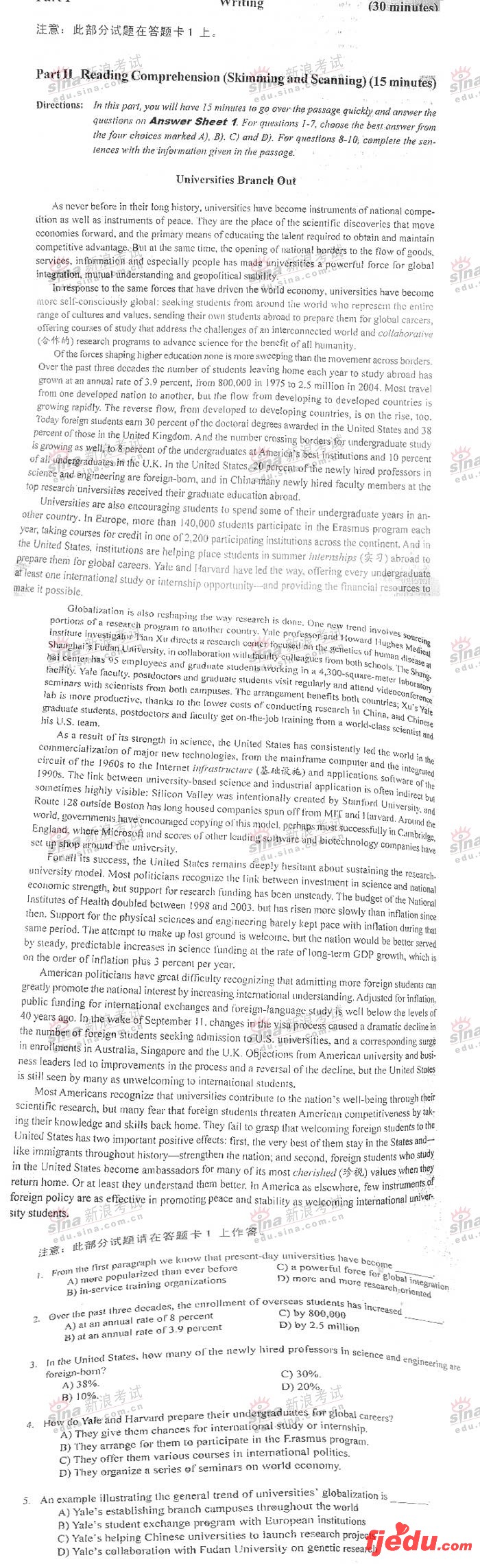 [组图]2007年12月大学英语四级考试B卷试题及答案