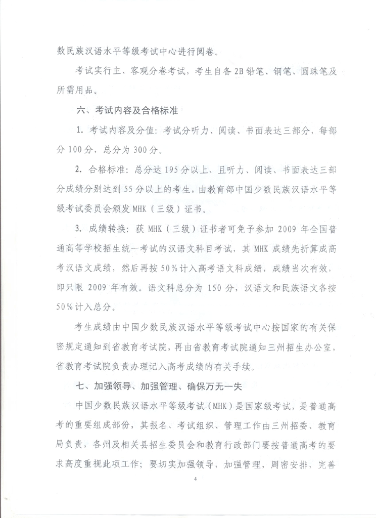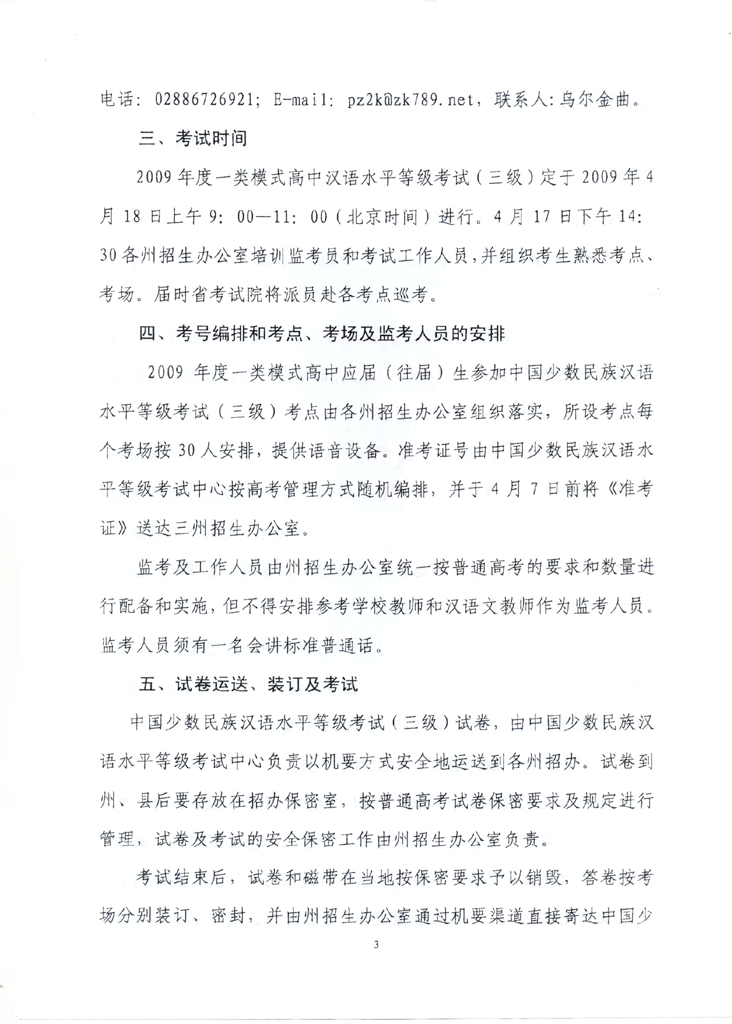 四川省2009年度中国少数民族汉语水平等级考试(MHK三级)工作的通知