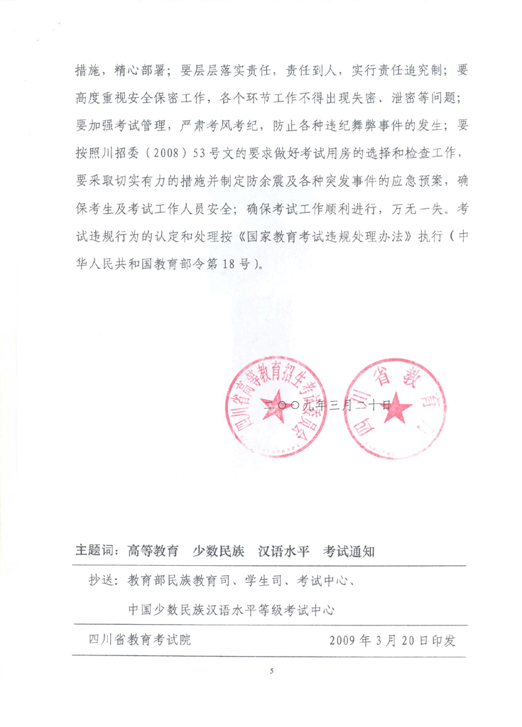 四川省2009年度中国少数民族汉语水平等级考试(MHK三级)工作的通知