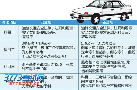 2013年1月1日起,科目一、科目二、科目三考试全部按照新的考试内容和标准进行考试,之前已考试合格的成绩(包括科目二桩考)仍然有效。
