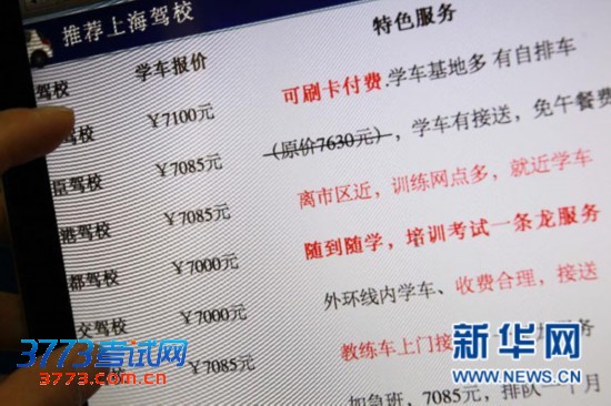 在上海本地的一家生活服务类的网站上,众多驾校公布的学车报价都达到甚至超过了7000元(1月8日摄)。新华社记者 裴鑫摄
