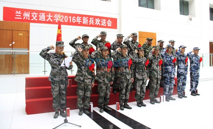9月18日,兰州交通大学2016年新兵入伍欢送会在国际会展中心举行。副校长马军党、相关职能部门负责同志共同为从校园地应征入伍的2016年新兵代表举行了庄严而又隆重的欢送仪式,欢送他们踏上新的征程。