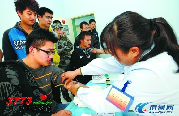 冬季征兵体检工作昨天开始,南通共有2195名大学生参加体检,再创高学历应征青年数量历史新高。今天,更有多名在外地求学的大学生,坐飞机赶回来参加征兵体检。