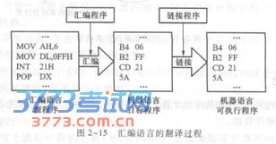 1)机器语言 在计算机中,指挥计算机完成某个基本操作的命令称为指令。所有指令的集合称为指令系统,直接用二进制代码表示指令系统的语言称为机器语言。 机器语言是直接用二进制代码指令表达的计算机语言。机器语言是唯一能被计算机硬件系统理解和执行的语言。因此,它的处理效率最高,执行速度最快,且无需“翻译”。但机器语言的编写、调试、修改、移植和维护都非常繁琐,程序员要记忆几百条二进制指令,这限制了计算机软件的发展。 2)汇编语言 为了克服机器语言的缺点,人们想到直接使用英文单词或缩写代替晦涩难懂的二进制代码进行编程,从而出现了汇编语言。 汇编语言是一种把机器语言“符号化”的语言。它和机器语言的实质相同,都直接对硬件操作,但汇编语言使用助记符描述程序,例如,ADD表示加法指令,MOV表示传送指令等。汇编语言指令和机器语言指令基本是一一对应的。 相对机器指令,汇编指令更容易掌握。但计算机无法自动识别和执行汇编语言,必须进行翻译,即使用语言处理软件将汇编语言编译成机器语言(目标程序),再链接成可执行程序在计算机中执行。汇编语言的翻译过程如图2—15所示.