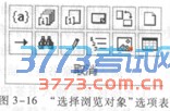 4)用快速定位按钮定位 、用快速定位按钮定位,与用定位命令一样,可以快速定位光标到指定的项。在垂直滚动条的底部有3个用于快速浏览对象的按钮,单击“选择浏览对象”按钮 ,弹出图3—16所示的“选择浏览对象”选项表,单击选定的浏览对象,光标迅速移至当前光标后的最近一个“对象”处。单击“前一个”按 或“后一个”按钮 ,光标则移至当前光标之前或之后的一个“对象”处。