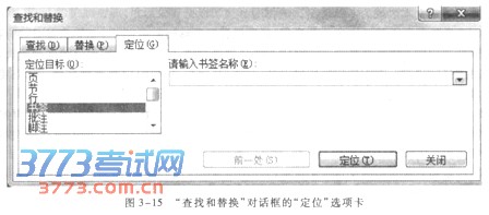 ②执行“开始”→“编辑”→“替换”命令,打开“查找和替换”对话框中,单击“定位”选项卡,出现图3—15所示的“宗付”诜项卡窗口.