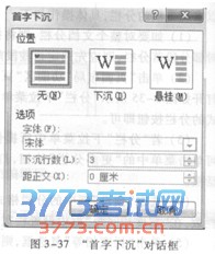 (5)在“选项”组中选定首字的字体,填人下沉行数和距其后面正文的距离。