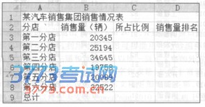 2.对习题l中所给的工作表进行计算,计算销售量的总计,置89单元格;计算“所占比例”列的内容(百分比型,保留小数点后两位),置C3:C8单元格区域;计算各分店的销售排名(利用RANK函数),置D3:D8单元格区域;设置A2:D9单元格内容水平对齐方式为“居中”。
