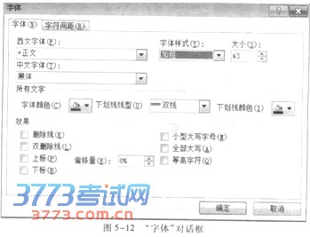 若需要其他更多字体格式命令,可以选择文本后单击“字体”组右下角“字体”按钮,将出现字体”对话框,根据需要设置各种文本格式即可,如图5—12所示。