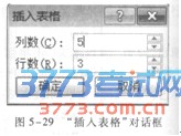 ②单击“插入”选项卡“表格”组“表格”按钮,在弹出的下拉列表中单击“插入表格”命令,出现“插入表格”对话框,输人要插入表格的行数和列数。如图5—29所示。