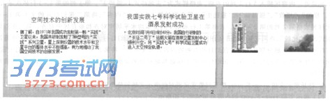 (3)第一张幻灯片的版式改为“两栏内容”,将第三张幻灯片左侧图片移到第一张幻灯片右侧的内容区,图片的动画设置为“翻转式由远及近”,持续时间为l.5秒。文本动画设置为“擦除”,效果选项为“自顶部”。动画出现顺序为先文本后图片。第二张幻灯片的版式改为“标题和竖排文字”,文本部分的行距为1.6倍。第三张幻灯片版式改为“标题和内容”,将该幻灯片中盼图片插入到内容区。标题输入“我国成功发射实践七号科学实验卫星”。背景为预设颜色“宝石蓝”,类型为“标题的阴影”。第三张幻灯片改为第一张幻灯片。