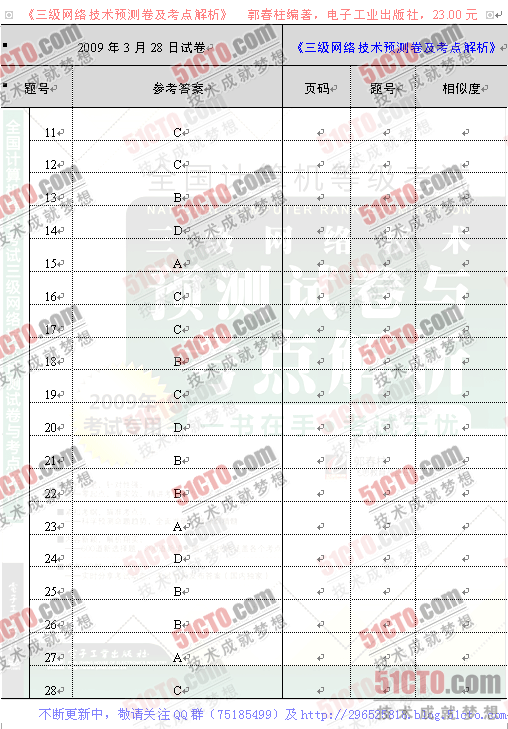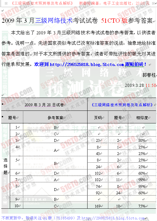 [图文]2009年3月计算机等级考试三级网络笔试试题答案