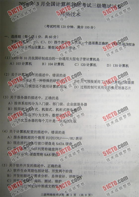 [组图]2009年3月计算机等级考试三级试题-网络技术笔试