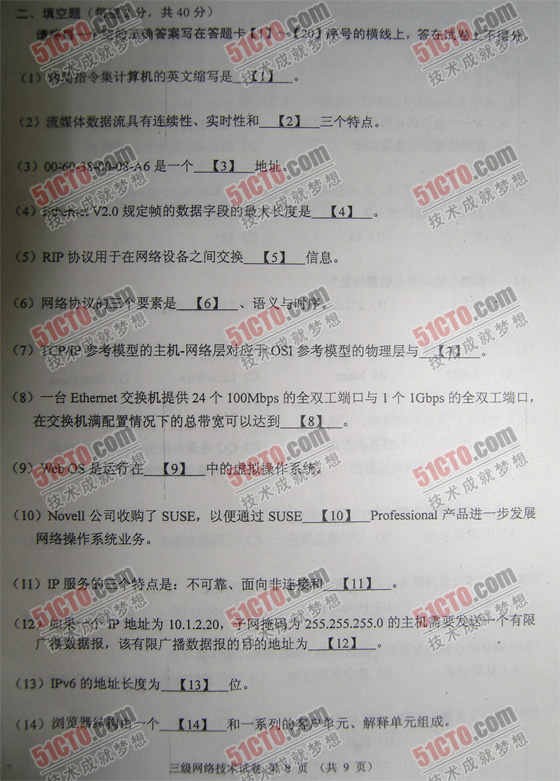 [组图]2009年3月计算机等级考试三级试题-网络技术笔试