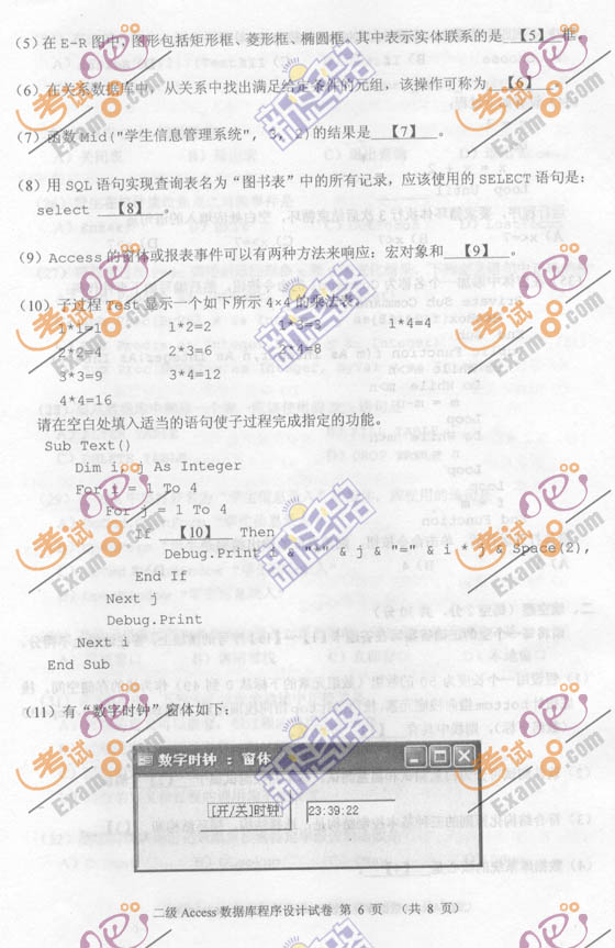 [组图]2009年3月计算机等级二级Access笔试真题及答案下载