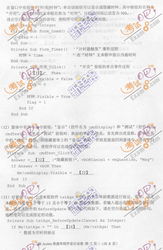 [组图]2009年3月计算机等级二级Access笔试真题及答案下载