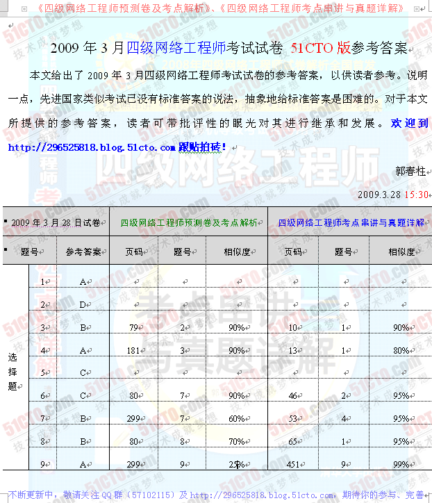 [图文]2009年3月计算机等级四级网络工程师真题答案