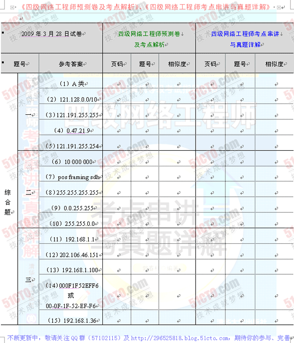 [图文]2009年3月计算机等级四级网络工程师真题答案