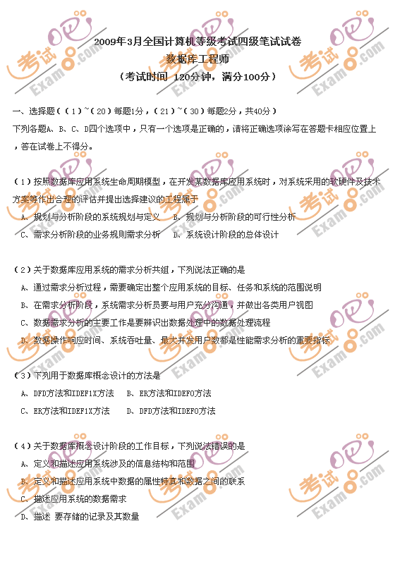 [组图]2009年计算机等级考试四级数据库笔试试卷