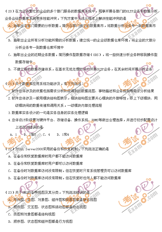 [组图]2009年计算机等级考试四级数据库笔试试卷