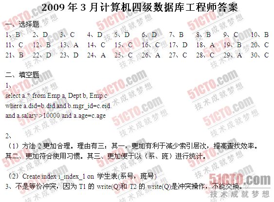 [组图]2009年3月计算机等级考四级数据库工程师笔试试题答案