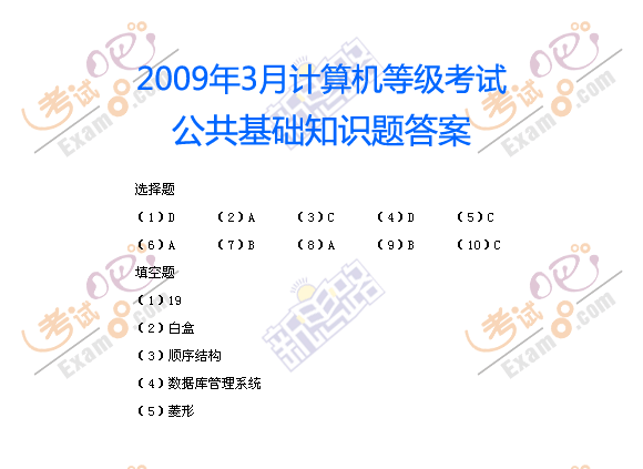 [图文]2009年3月计算机等级二级公共基础笔试试题答案