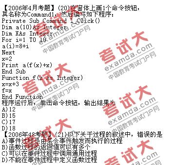 [组图]计算机二级VB过程历届最新考题汇编与解答