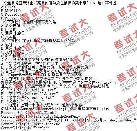 [组图]VB菜单和对话框全真试题训练与参考答案