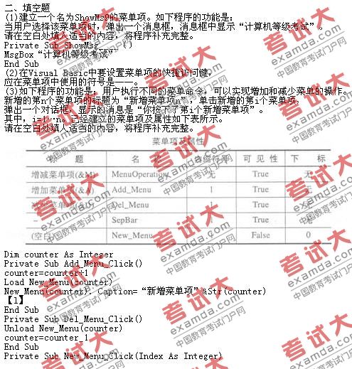 [组图]VB菜单和对话框全真试题训练与参考答案