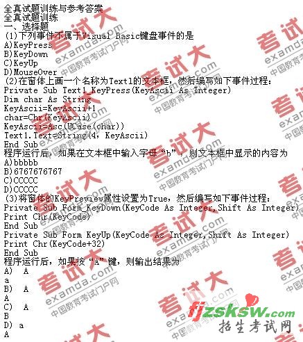 [图文]VB键盘与鼠标事件过程全真试题训练与参考答案
