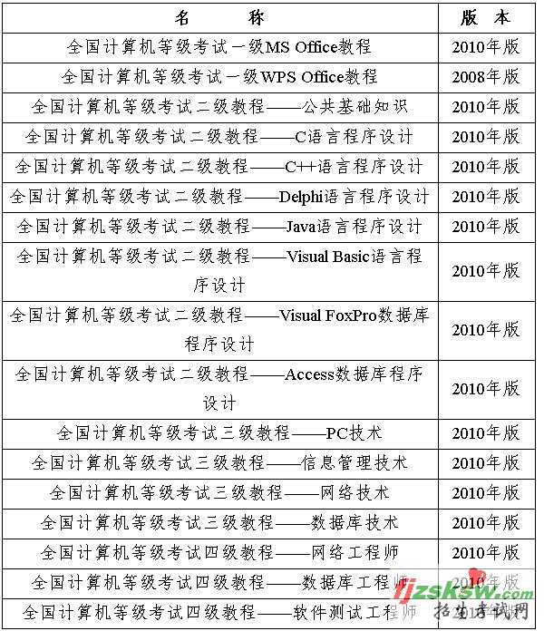 一级MS Office教材由南开大学出版社出版,其它科目教材由高等教育出版社出版,教材中附该科目考试大纲。