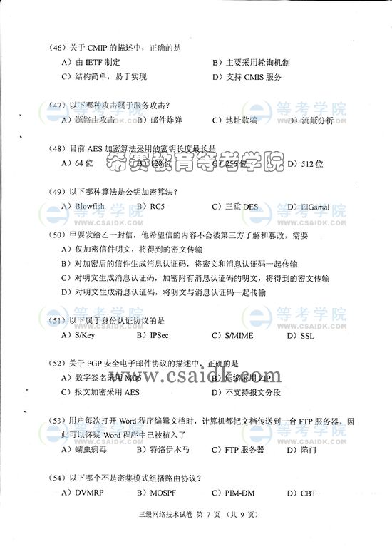 [组图]2010年9月计算机等级考试三级笔试试卷_网络技术
