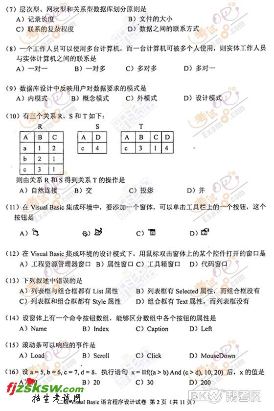 [组图]2010年下半年计算机二级考试VB真题及答案