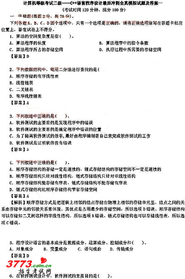 [组图]2012年计算机二级考试C++全真试题及答案一