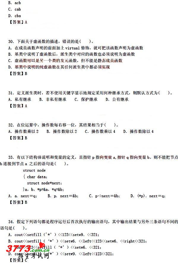 [组图]2012年计算机二级考试C++全真试题及答案三