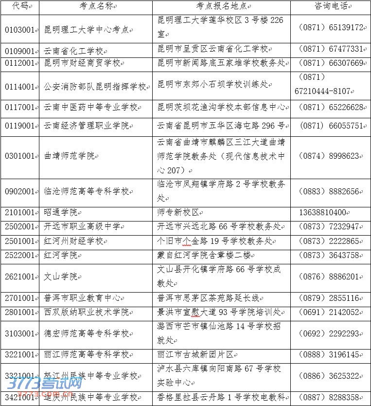 [图文]2014年上半年云南英语等级考试考点地址电话