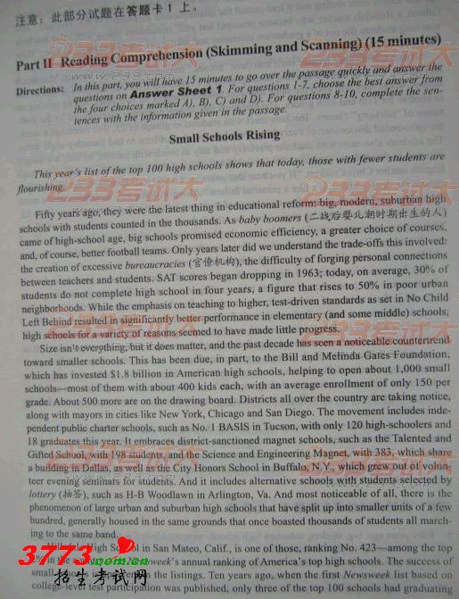 [组图]2012年6月英语四级考试快速阅读试题及答案
