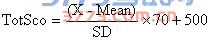 公式中TotSco表示总分,X表示每位考生常模转换前的原始总分,Mean表示常模均值,SD表示常模标准差。每次四级考试等值后的卷面分数都将参照此常模公式转换为报道分数。