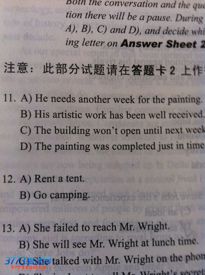 3773考试网讯 2012年12月22日全国大学英语四、六级考试开考,本次考试报考人数达938万人。3773考试网外语频道为广大考生搜集了2012年12月英语六级阅读真题,以供广大考生参考:
