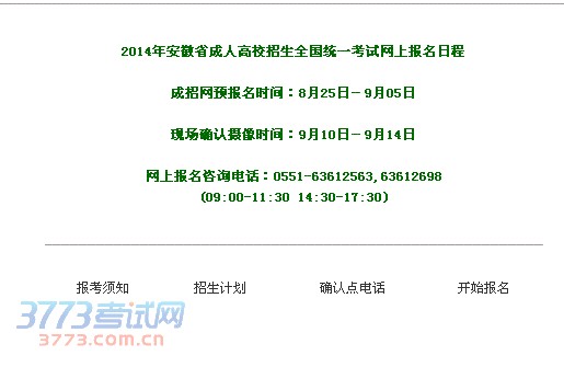 2014年安徽省成人高校招生全国统一考试网上报名日程