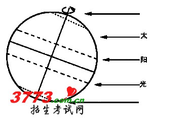 43.右图是6月22日太阳照射地球示意图,回答下列问题(前两小题各2分,后一小题6分,共计10分)