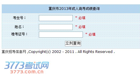 重庆市2013年成人高考成绩查询