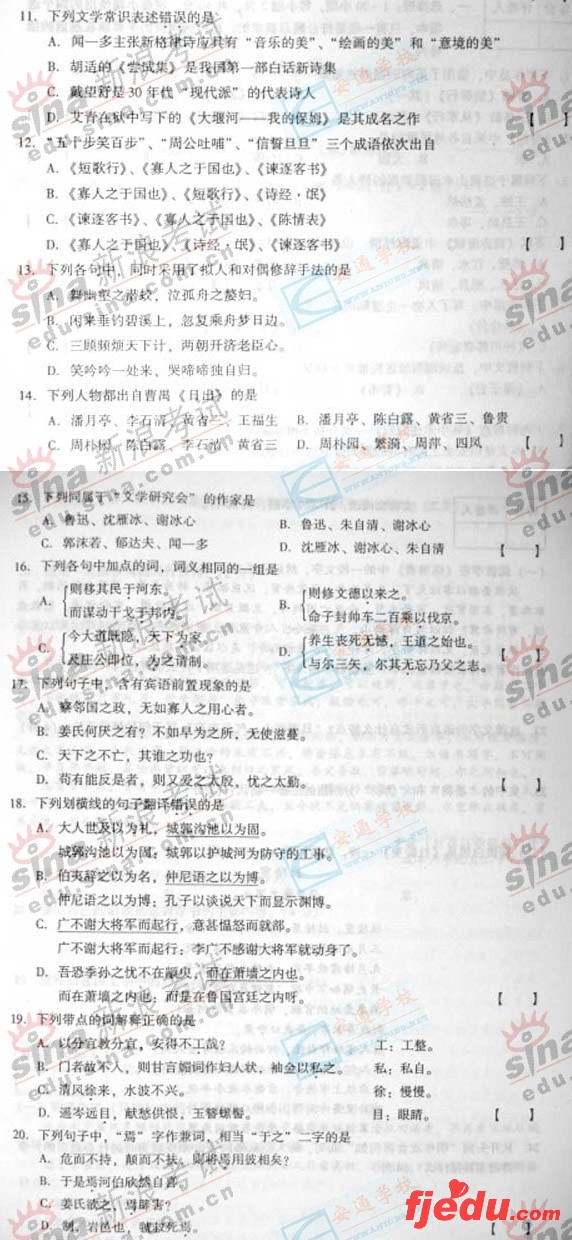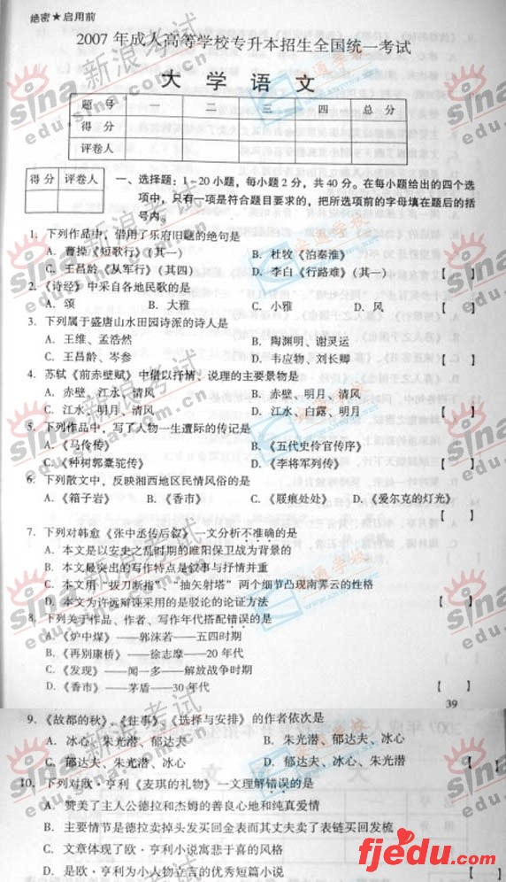 [组图]2007年成人高考专升本考试大学语文试题及答案