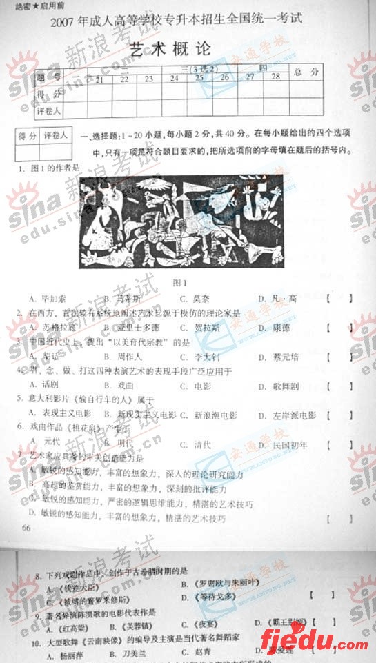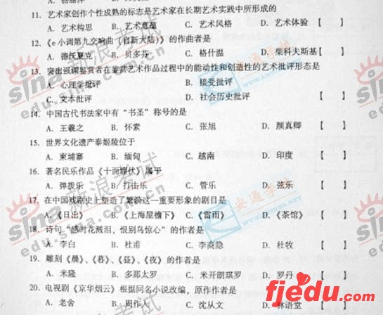[组图]2007年成人高考专升本艺术概论试题及答案
