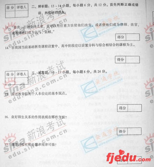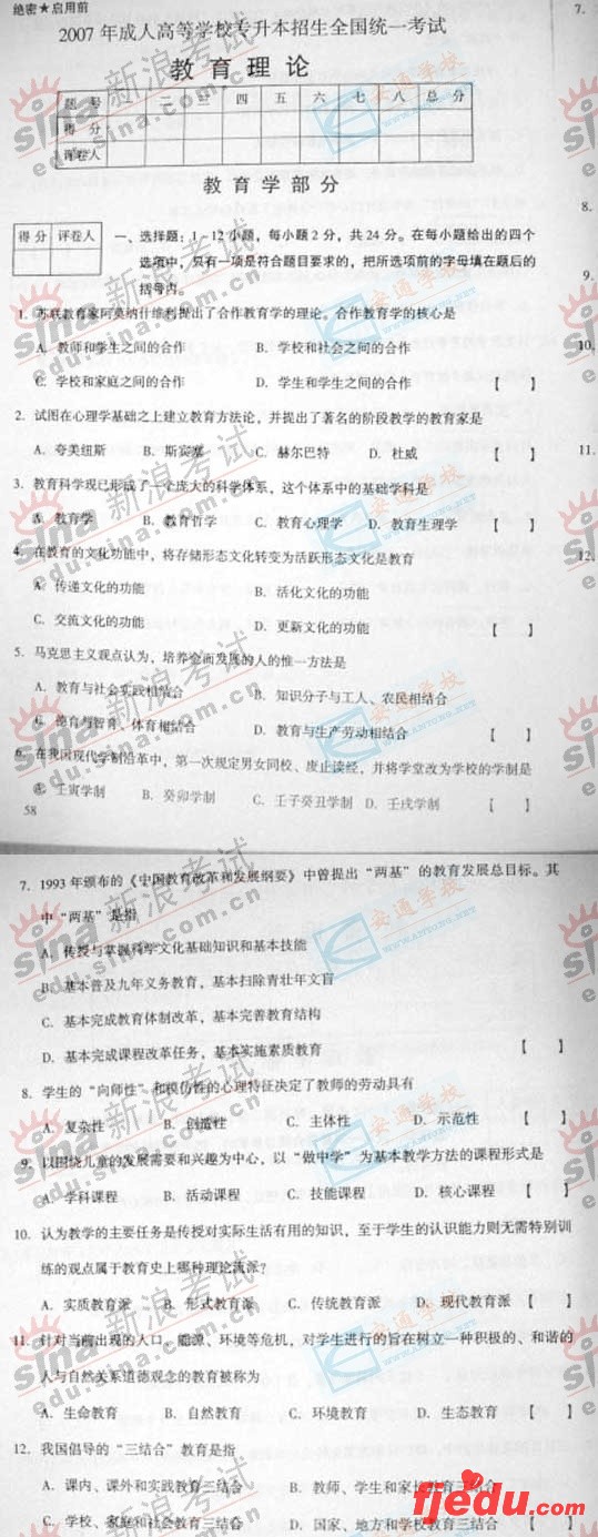 [组图]2007年成考专升本教育理论教育学试题及答案