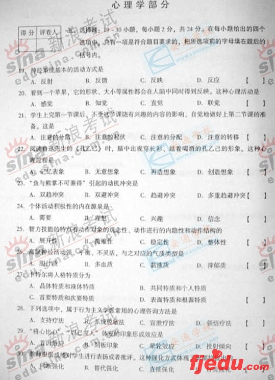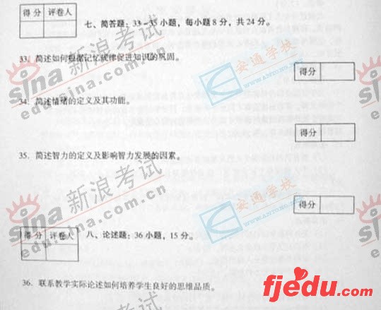 [组图]2007年成考专升本教育理论心理学试题及答案