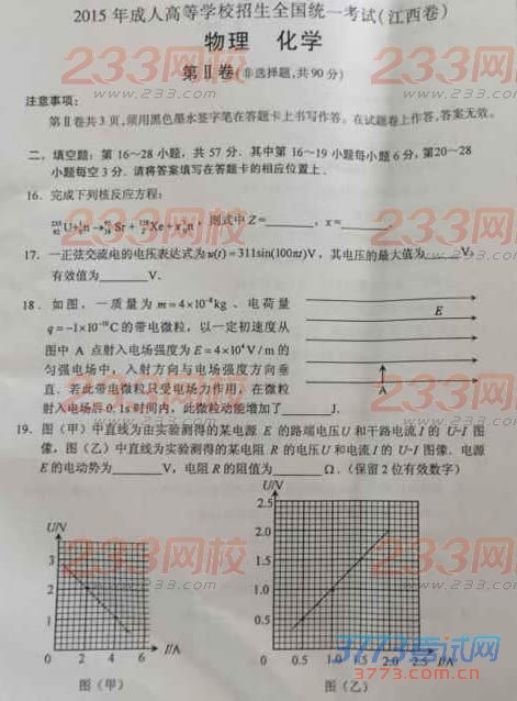 [组图]2015年成人高考高起点理化综合考试试题(完整版)
