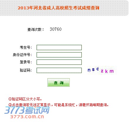 2013年河北省成人高考成绩查询[11-20]  2013年河北省成人高校招生考试成绩查询
