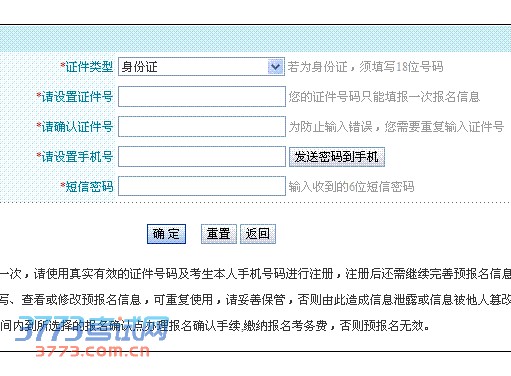 2.考生接收到的短信密码用于填写、查看或修改预报名信息,可重复使用,请妥善保管,否则由此造成信息泄露或信息被他人篡改等后果,责任考生自负。