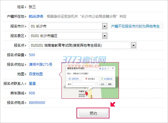 1、考生必须选择一个报名点进行现场确认审核,选择报名点后,点击“预约”按钮进行预约。